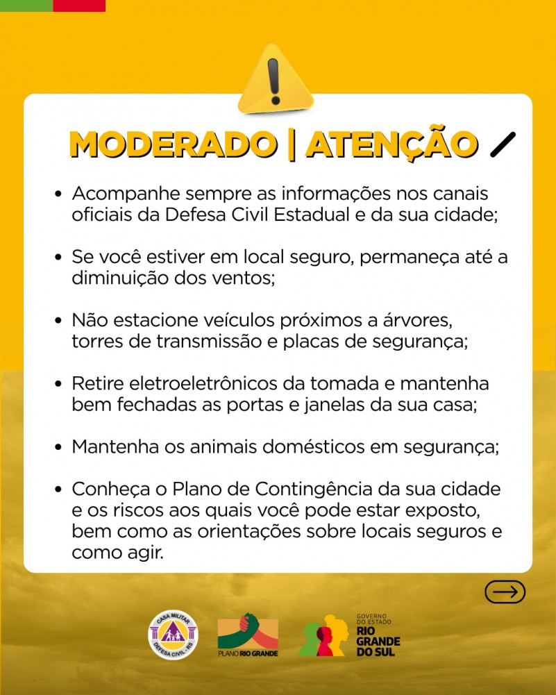 Defesa Civil alerta: condição de ATENÇÃO para ventos fortes que atuam em áreas do Nordeste e Litoral Médio e Norte, com valores entre 60 e 80 km/h. Risco MODERADO de destelhamento e queda de árvores. Válido até 19h do dia 8 de abril. Evite áreas de risco. Emergência ligue 190/193.